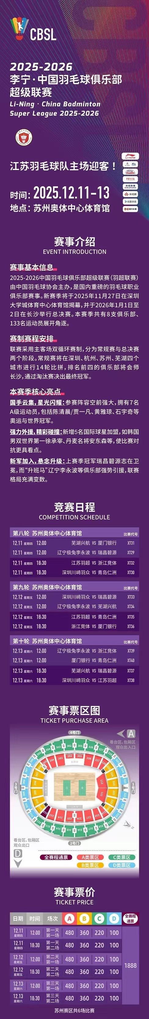 【苏州】2025-2026中国羽毛球俱乐部超级联赛第三阶段(江苏主场)
