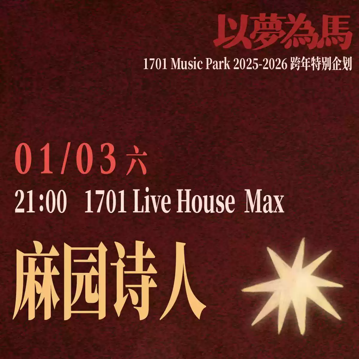【南京】1701 Music Park跨年特别企划「麻园诗人环星闪耀世界之旅」
