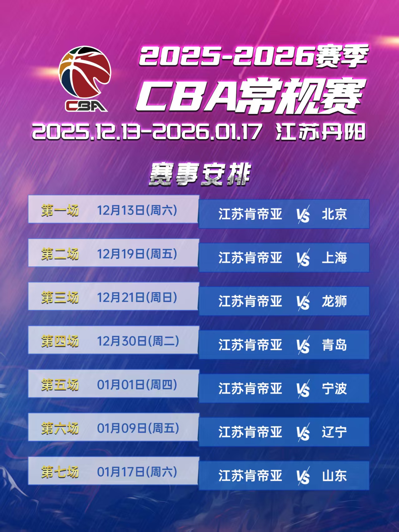 【丹阳】2025-2026赛季CBA中国男子篮球职业联赛江苏肯帝亚主场