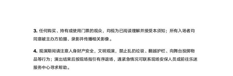 实名制演出请勿用同一“实名观演人信息”在多家购票平台重复下单,由该行为产生的退票手续费/不可退票/无法入场等所有损失,由购票人承担。