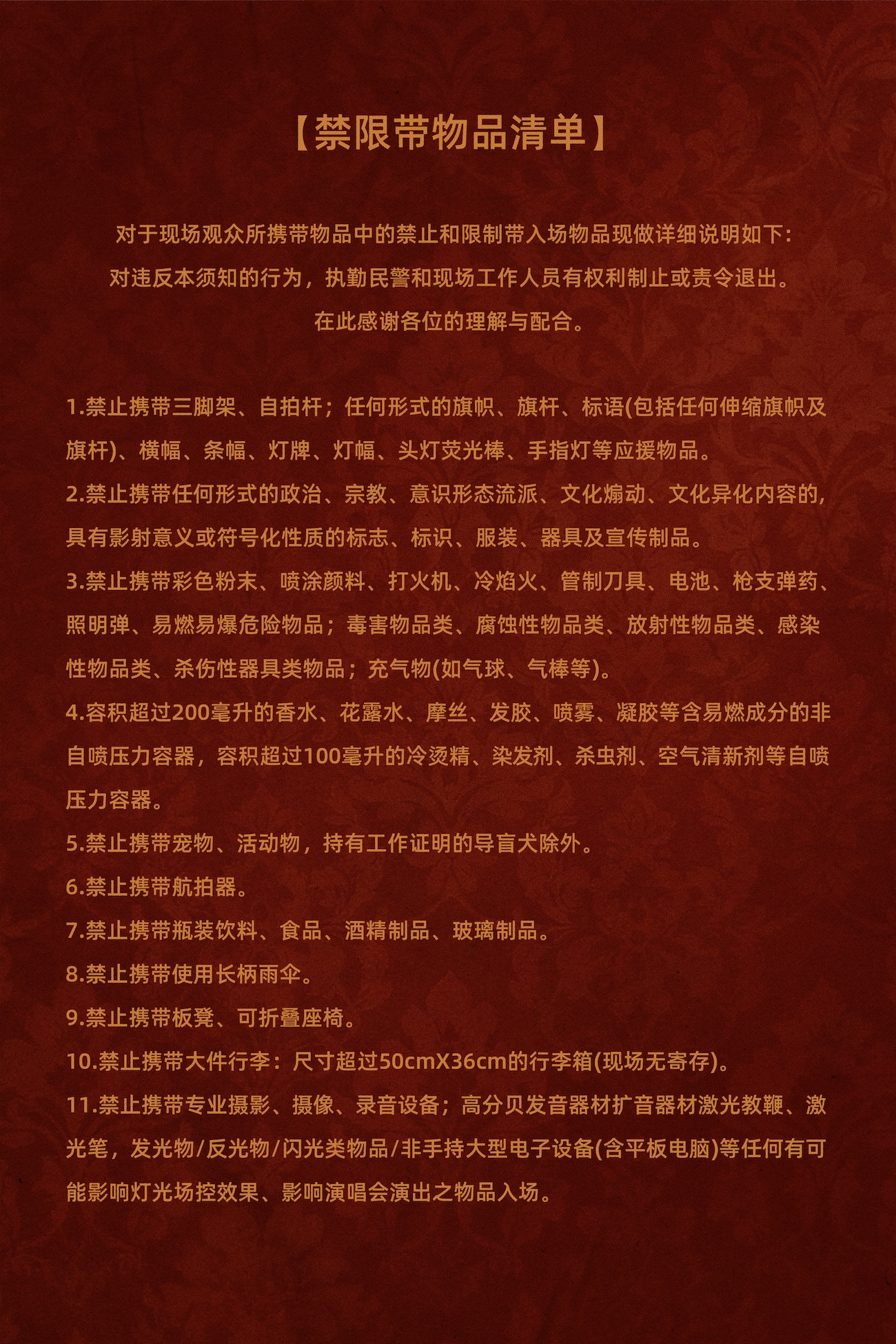 购买前请提前规划好行程,当天确保至少提前一小时到达现场,以免影响您正常观演,感谢您的理解与配合。