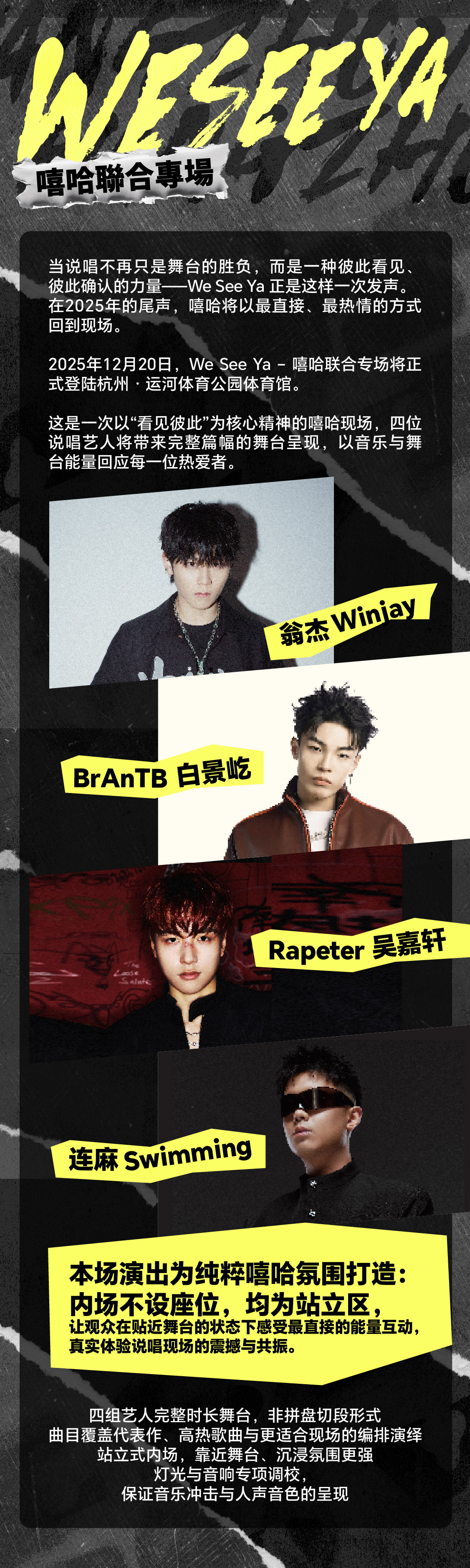 【杭州】「白景屹/翁杰Winjay/麻Swimming/Rapeter吴嘉轩」We See Ya-嘻哈联合专场·杭州站