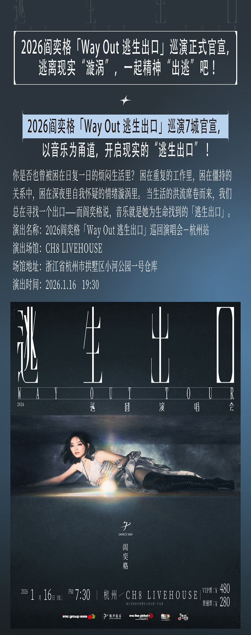2026阎奕格「Way Out 逃生出口」巡回演唱会-杭州站