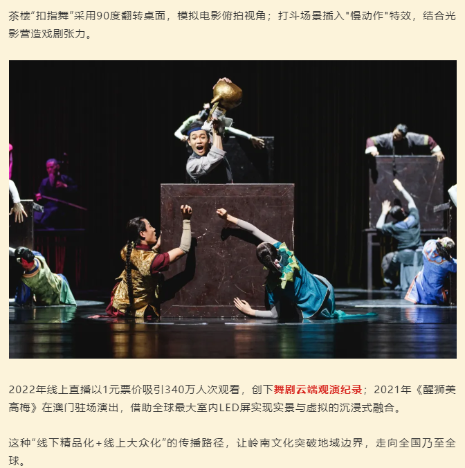 近年来全力推进专业化、品牌化、多元化的综合发展道路,导演策划及组织实施了一系列大型主题活动;肩负着广州市重要的国内外文化交流演出任务,在弘扬中华优秀传统文化、继承与发展岭南文化、推广与传播广州文化的艺术实践中做出了积极的努力与贡献。