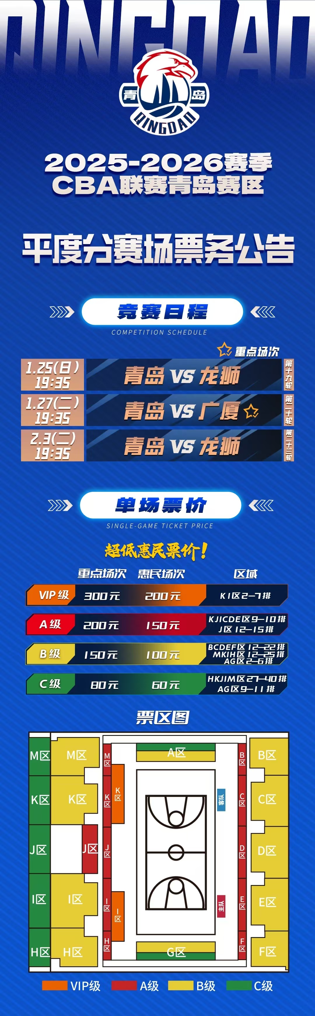 【平度】2025-26赛季CBA 青岛国信制药主场门票