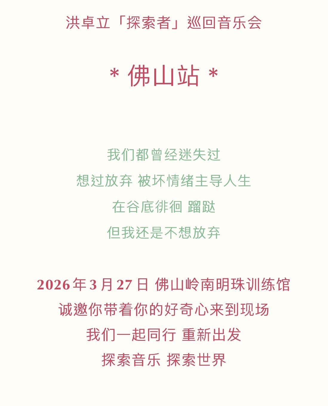 【佛山】洪卓立Explorer巡回音乐会 佛山