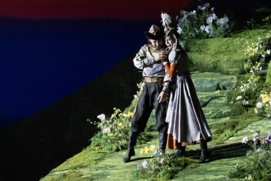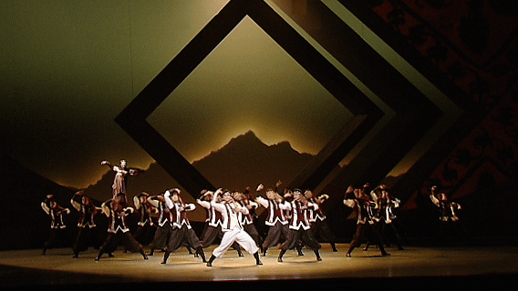 “ 哈萨克族的独特习俗“姑娘追”,最初是青年男女以赛马传情表意的美好途径。现如今,舞者由此延展为生生不息、昂扬向上的精神。”