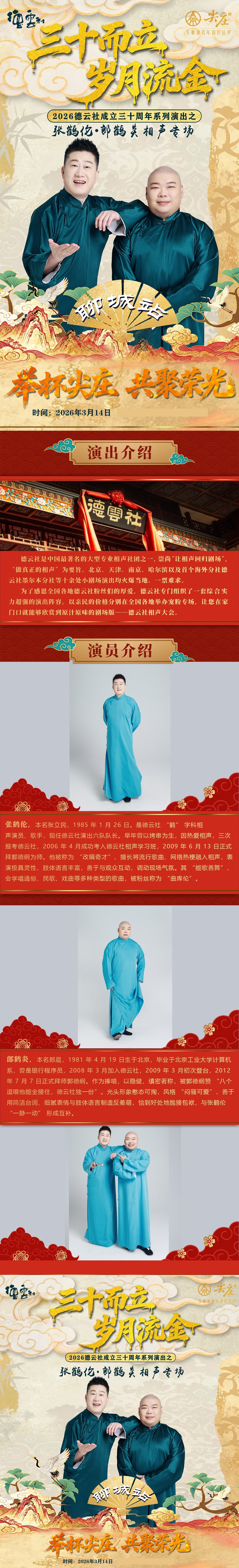 【聊城】“三十而立 岁月流金”2026德云社张鹤伦·郎鹤炎相声专场-聊城站