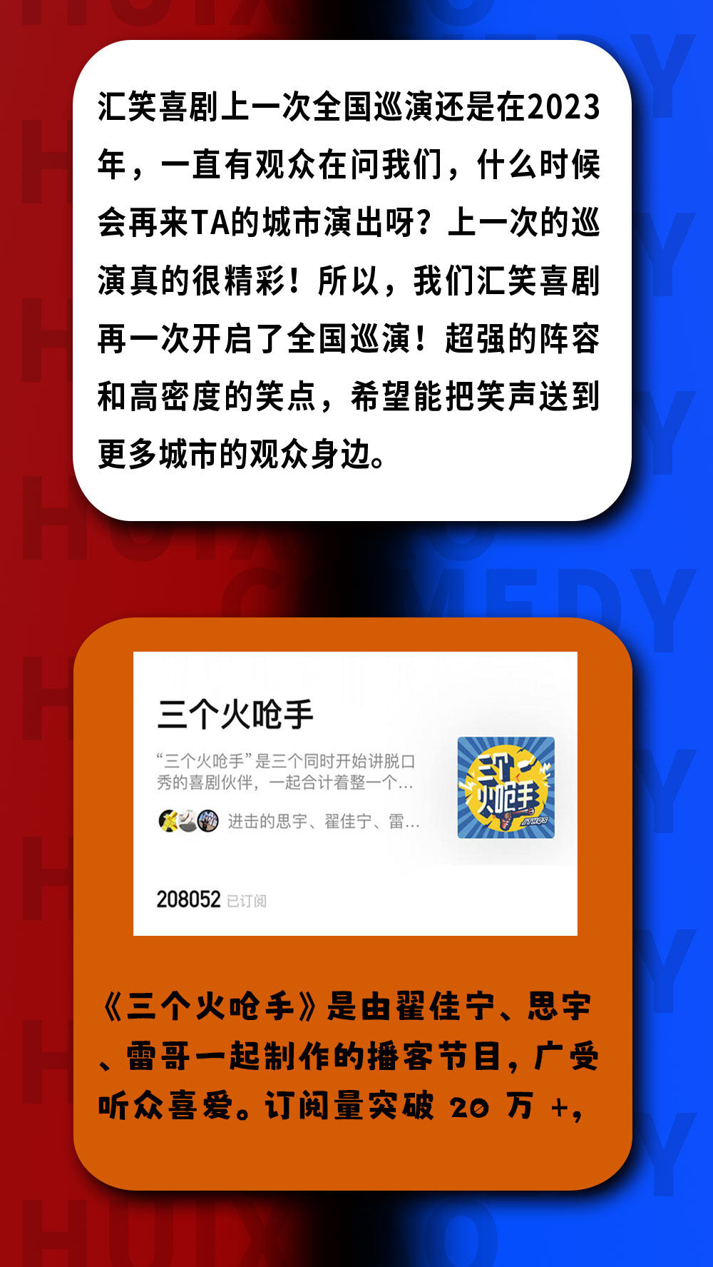 【大连】毛豆、翟佳宁、思宇、雷哥、小奇、宗宝 | 汇笑喜剧巡演 | 三个火呛手和他的朋友们·大连站