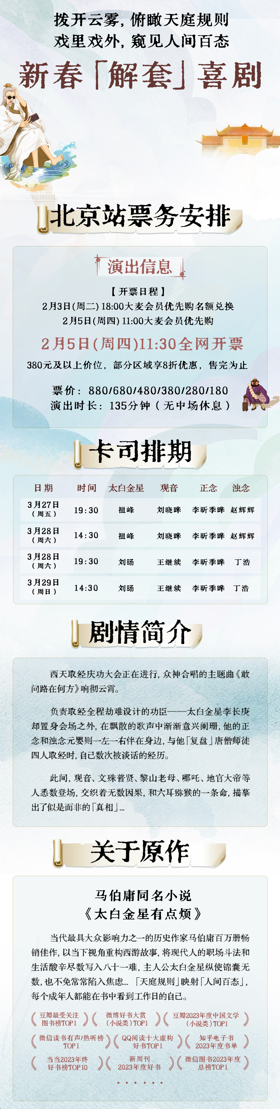 【北京】「祖峰/刘旸教主/刘晓晔」舞台剧《太白金星有点烦》北京
