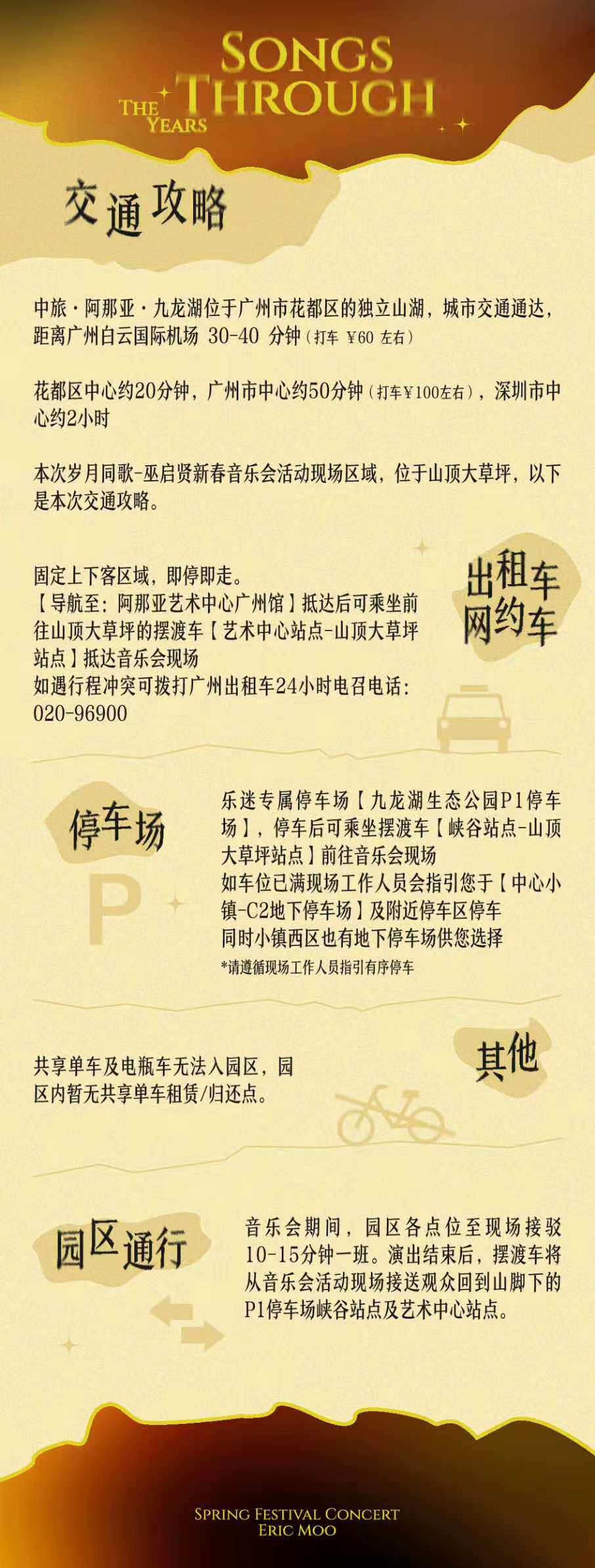 演出介绍:岁月同歌-巫启贤新春音乐会,当巫启贤的歌声轻轻响起,像一位老朋友,把那些藏在岁月里的记忆,一一带到我们身边一首首老歌,仿佛时光的钥匙。些许酸楚,些许深情,当前奏响起,与身边人相视一笑,开始轻轻跟着哼唱。