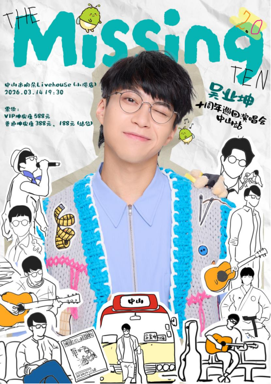 带着获奖的荣光与广州站的热烈余温,吴业坤正式官宣The Missing Ten十周年巡回演唱会2.0中山站预售开启!延续广州站的精彩,用歌声回馈中山歌迷支持!
