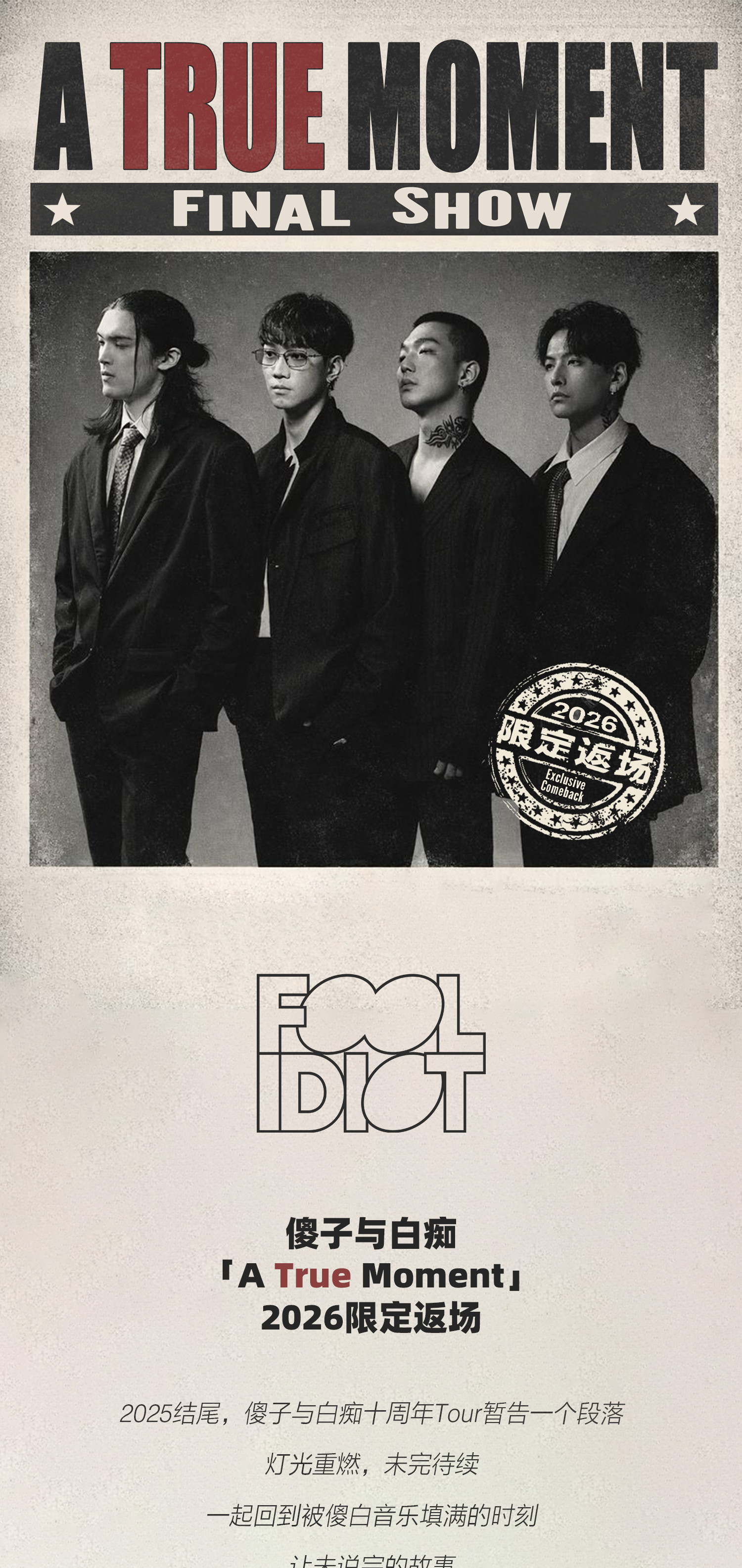 傻子与白痴「A True Moment」2026限定返场