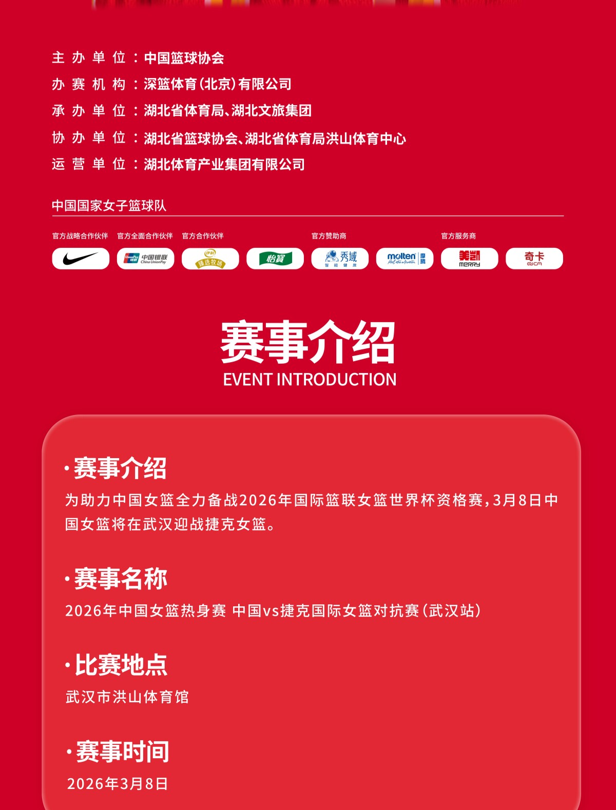 【武汉】2026年中国女篮热身赛 中国VS捷克国际女篮对抗赛