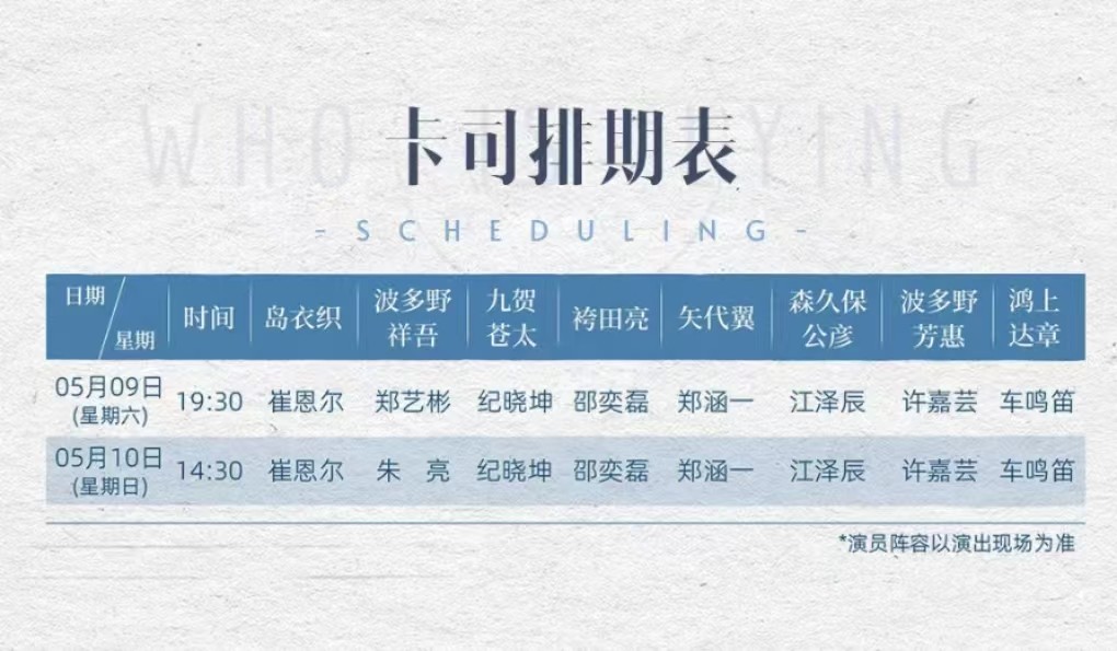 *以上图片为往期剧照,卡司阵容以实际演出为准
