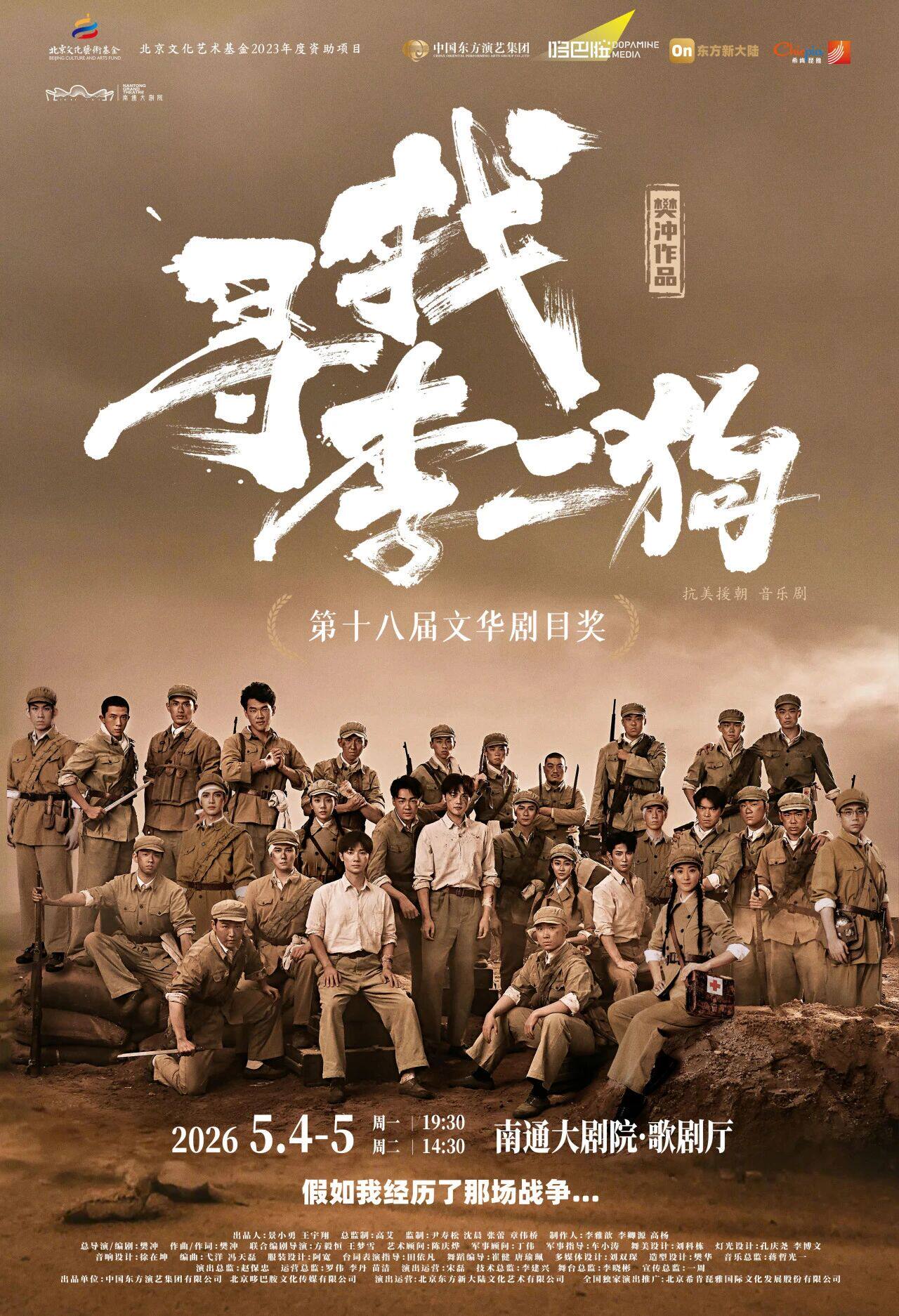 原创音乐剧《寻找李二狗》取材于中国人民志愿军第三十九军一一六师所参与的西线战斗。通过新颖的表现形式,着眼于“如果我们亲历了那场战争,我们会如何面对我们现在的生活”。