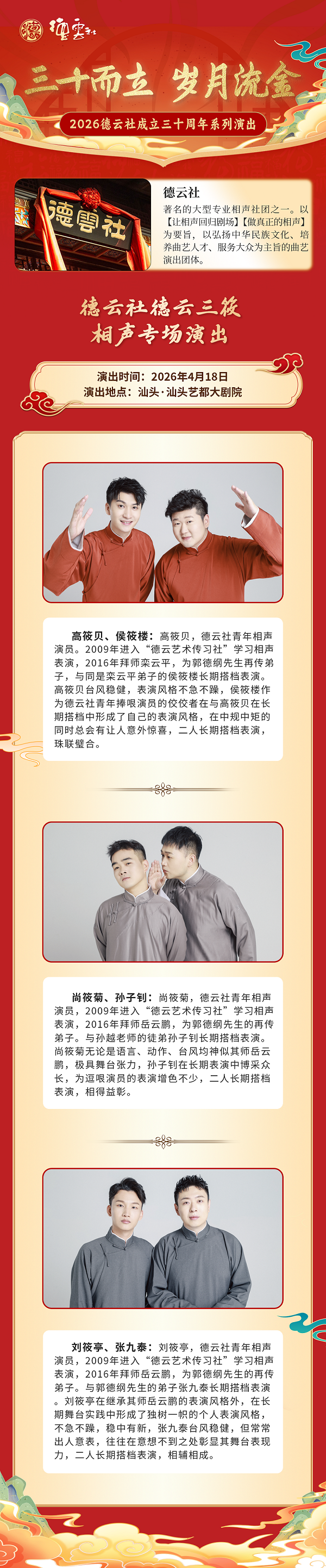 【汕头】“三十而立 岁月流金”2026德云社成立三十周年系列演出之德云三筱相声专场演出-汕头站
