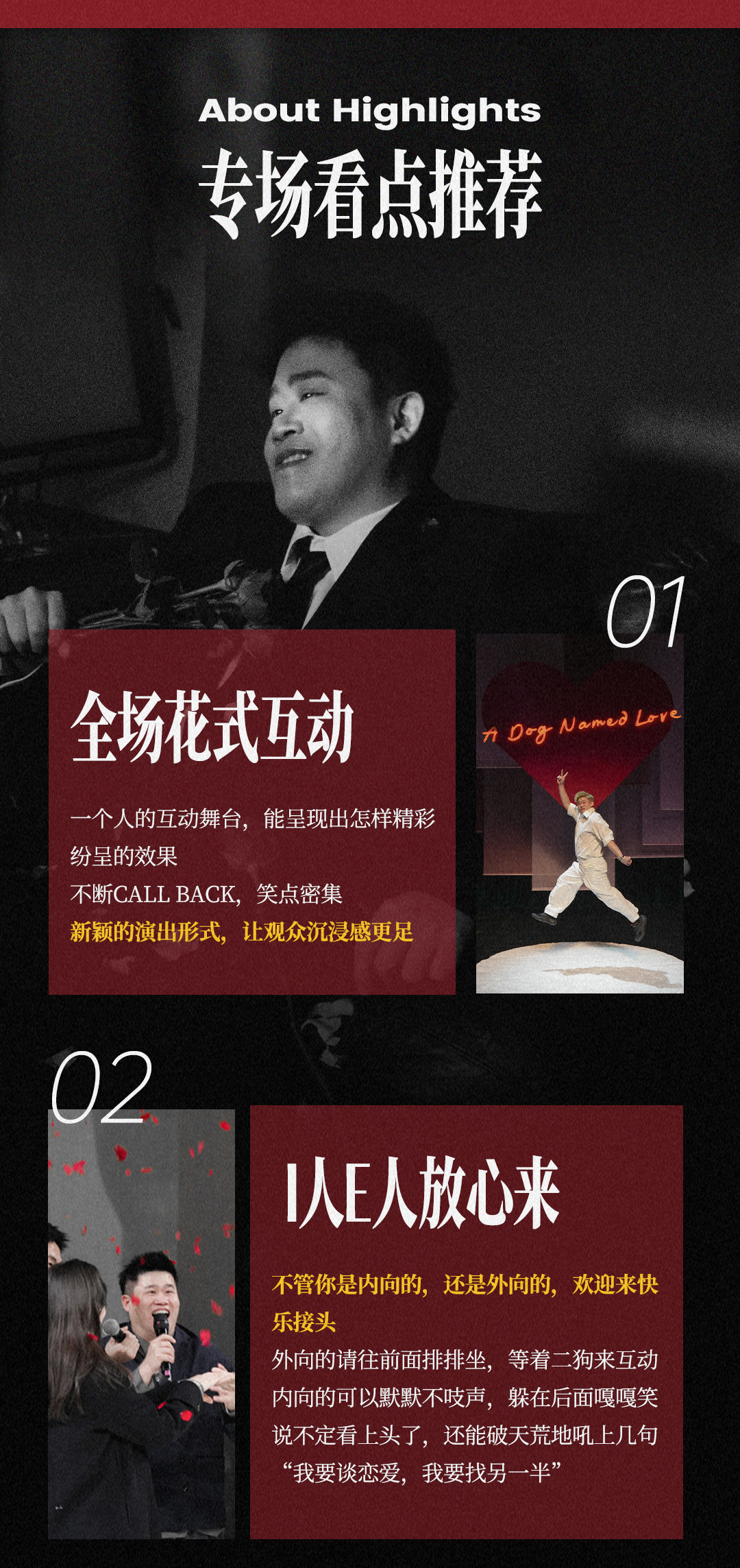 二狗互动交友专场《一条名叫爱情的狗》,将脱口秀的即兴互动与当代年轻人的社交需求巧妙结合,开创了一种全新的喜剧交友模式。
