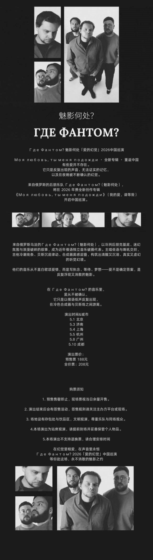 【上海】俄罗斯后朋Где Фантом?魅影何处 2026「爱的幻觉」巡演--上海站